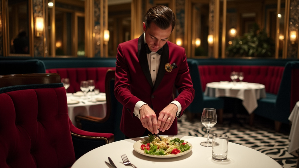 The dining experience is intentionally theatrical. Service captains, clad in custom burgundy tuxedos designed by Zac Posen, orchestrate a show of hospitality, complete with tableside preparations of classic dishes and an extravagant dessert presentation. The interiors, designed by Ken Fulk, evoke a sense of mid-century glamour, with deep reds, blues, geometric flooring, and striking artwork, creating a setting that is both nostalgic and utterly sophisticated, a defining characteristic of the **Carbone London** ambiance.